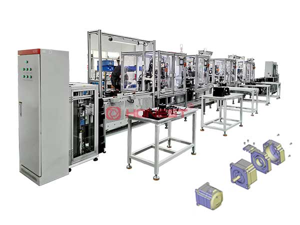 闭环步进电机组装线主要有三大功能组成:PCB板和码盘涂胶、后盖和侧盖螺丝锁附以及人工异音检测。闭环步进电机组装线为企业提高生产效率和产品质量以及降低生产成本提供了灵活有力的保障。设备主要工序有:人工组装PCB和码盘、点螺丝胶、PCB螺丝锁附、码盘螺丝锁附、编码器罩螺丝锁附、压线座螺丝锁附、性能测试、下料等工序。