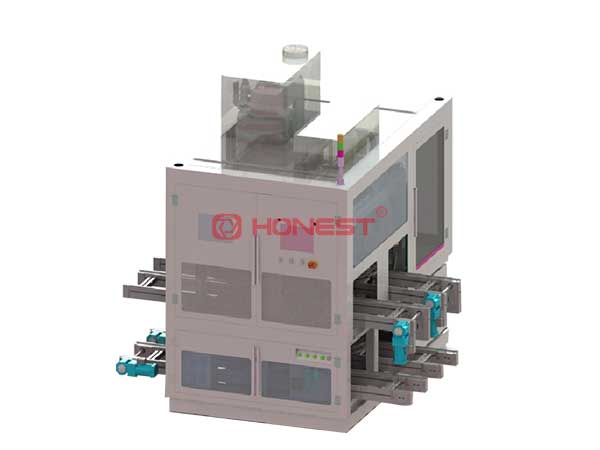 定子焊接机是对已插好线的定子进行激光焊接的产线自动化设备、智能化程度较高,配套MES系统,设备自动固定线头,可实现自动装夹焊接保护工装,同时配置有清洁机构,有效防止焊接过程中飞溅污染到定子。焊接机的工序流程:定子托板流入→读码→防护治具锁紧→自动激光焊接→防护治具松开→托板放行等。