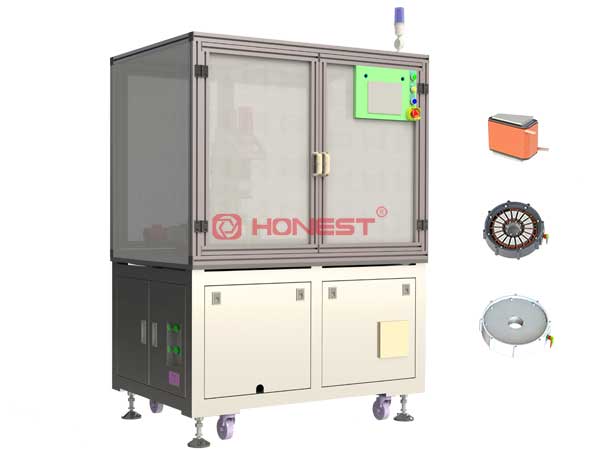 扁线轮毂电机分块定子绕线机通过折线??橛胩舅欧畈谷浦疲远葡?、剪线,可选配剥漆功能,单机预留了自动线对接口,后续可嫁接于扁线轮毂电机定子组装自动线。设备工序有:分块定子铁芯组入治具 → 分块定子绕线 →成品下料。