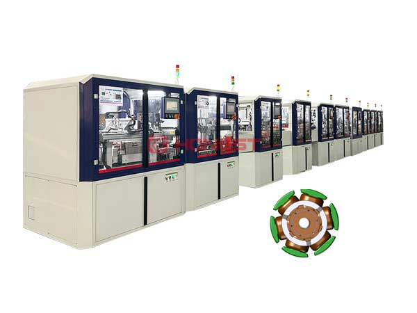 汽车座椅调角度电机装配生产线,由多台设备组成,U字型分布,使用船板+输送线的方式传送,主要完成绕线、点焊、精车、去重平衡、性能检测等工序。生产线依据客户工艺需求,为客户量身定制,可有效解决劳动力成本、技术管理等难题.